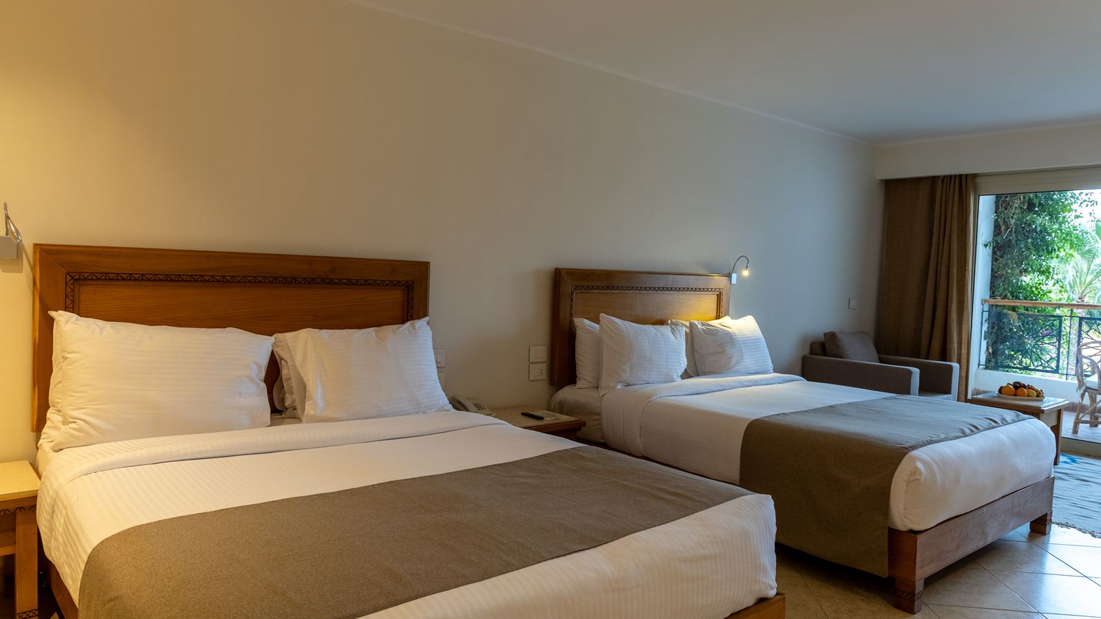 В комплектации номера 2 двуспальные кровати, кондиционер, телевизор, сейф, телефон, мини-бар. В числе прочих удобств Wi-Fi и набор для приготовления чая и кофе. Ванная комната с душем/ванной, феном и туалетно-косметическими принадлежностями.