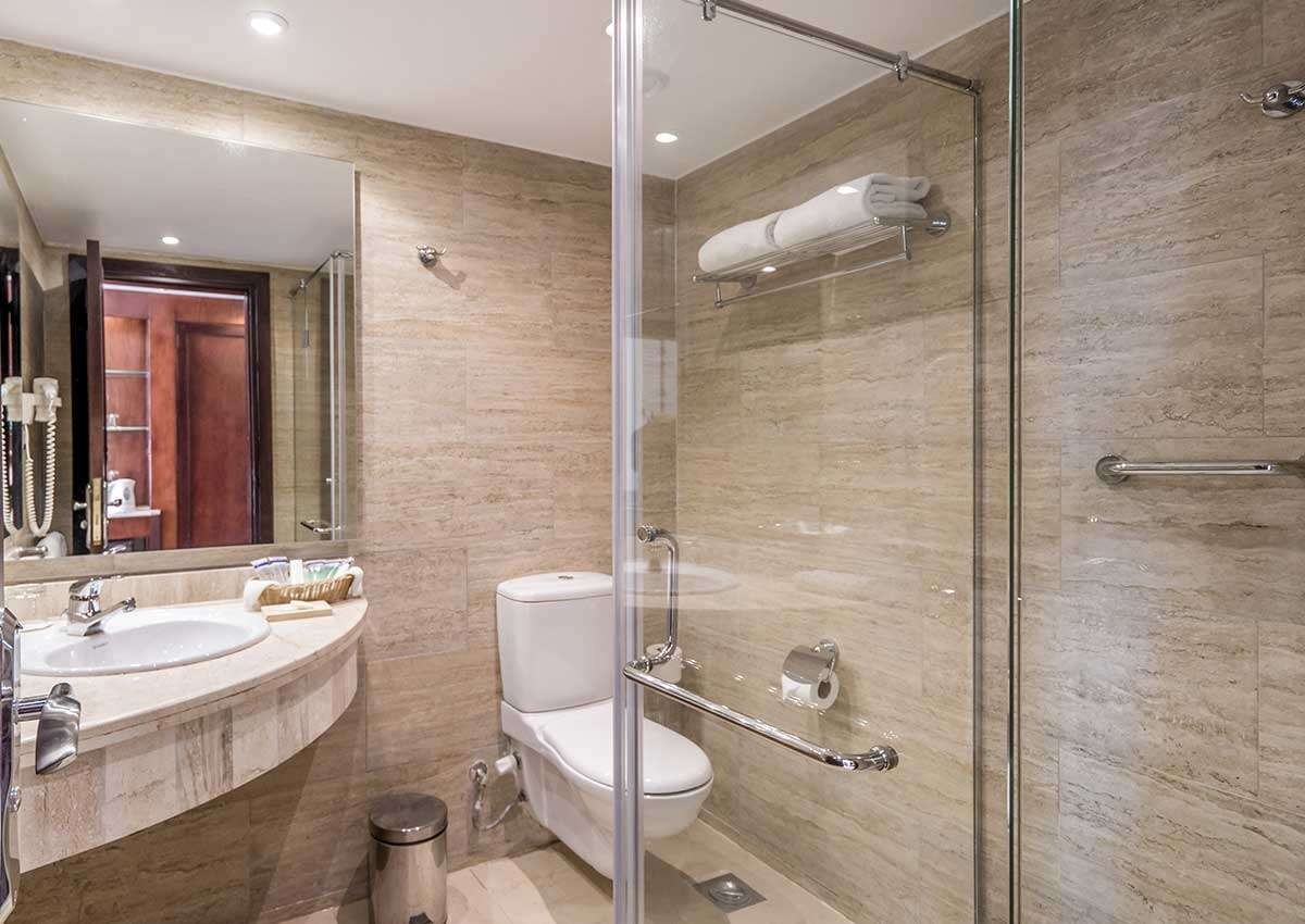 Двухкомнатный номер укомплектован меблированной гостиной, спальней с двуспальной кроватью, балконом/террасой. Санузел с душем, феном и набором фирменной косметики. К услугам гостей беспроводной Интернет, кондиционер, телевизор, телефон, мини-бар, сейф и чайно-кофейный набор.