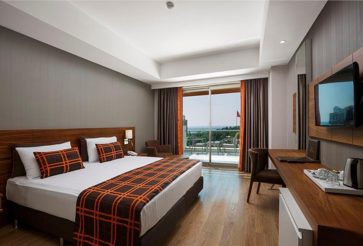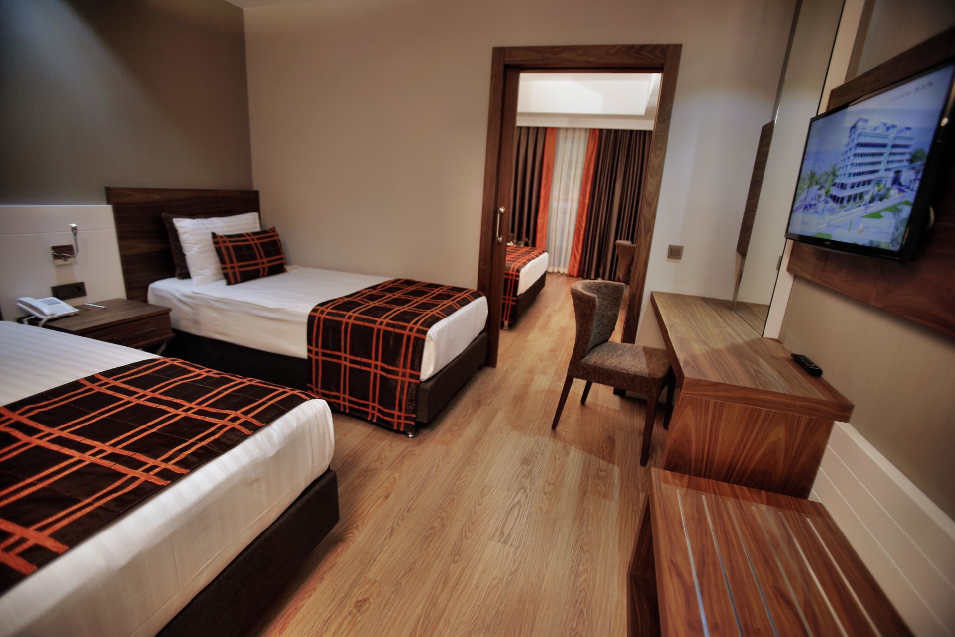 Мы были довольны нашим пребыванием в этом небольшом отеле, но если вы ищете развлечения или отель с удобствами для детей, обязательно выберите другой отель. Плюсы: Чистота - везде убирают в течение дня, столы в ресторан всегда были опрятными и готовыми для следующих гостей. Особенно надо упомянуть джентльмена, который чаще всего убирает у бассейнов. Он полон хорошего юмора и, вероятно, является самый трудолюбивый человек во всем отеле. Улыбающийся и трудолюбивый персонал Большой номер - мы получили номер для 3 человек, который был очень просторным. Мы также были очень доволен уборкой номера. Варианты покупок - около 5 минут от отеля есть целая широкая улица полно магазинов и универмагов. Также есть немало магазинов с разумные цены в отеле Пляж - весь пляжный бар очень современный и эстетичный. Они обедают как выбор из широкого меню (бургеры, пицца, макароны, чипсы, наггетсы, .. ) . Есть. также фрукты, гослема, вафли с мороженым и витаминный бар (за отдельную плату) . Там. был всегда лежак, доступный на пляже. И здесь они всегда были. приезжая и приводя в порядок использованные стаканчики или подметая дорожное покрытие. Очень вкусная еда и напитки - проводятся тематические вечера (дальневосточная кухня, морепродукты, мексиканская ночь, турецкая ночь) и разные салаты, подаваемые каждую ночь. Они также смешивают превосходные напитки, из которых у них отличный выбор а лучшие напитки мистер Олух смешивает в лобби-баре. Минусы: - Бронирование шезлонгов у бассейна - на бассейне есть бумага шезлонги, где написано, что можно бронировать шезлонги от 8 . 00 и максимум на один час. Если вы не появитесь на лежаке через час, ваш полотенце забирают и оставляют на стойке регистрации или у горок. Этот инцидент случилось с нами, потому что некоторые родные думали, что хотят наши лежаки и они явно посчитали нас, если мы прибудем в течение часа. К сожалению, мы не прибыли в течение часа, поэтому они потребовали наши лежаки. О последующих дней мы видели, что люди, которые заказали лежаки рядом с нами с 9 . 00 am пришел в бассейн только в 2 . 02 вечера и никто не собирал свои полотенца (и здесь было больше таких случаев) . Таким образом, я считаю такое поведение абсолютно возмутительно, несмотря на то, что это расчетливый поступок находящихся там гостей, так как персонал точно не успевает отсчитывать время с момента, когда кто-то есть или есть не на лежаке. - Анимация - Анимация была скучной и не хватало энергии, как и сами мультипликаторы. Я абсолютно не понимаю похвалы здесь для Моисея, который просто тусуется в баре у бассейна днем, не имеет никаких занятий, просто модерирует утренние игры в бильярд (которые длятся максимум 30 минут) и говорит несколько предложений в течение вечера программа. То же самое с Османом, который выглядел абсолютно скучным и вместо призывая людей танцевать во время пенной вечеринки, например, и танцевал сам, он курил. Единственным хорошим аниматором был Кристина, которая занималась йогой и водной гимнастикой. Этот аниматор источал энергии и мы никогда не сталкивались с такой водной гимнастикой где ты действительно растягиваешь тело, круто. - небольшие рестораны и связанный с ними меньший выбор - очень маленькие удобства для детей - есть 3 горки и небольшой бассейн для гребли. Но нет игровой площадки и детской зоны в зоне ресторан. - так как это отель с 90% 
