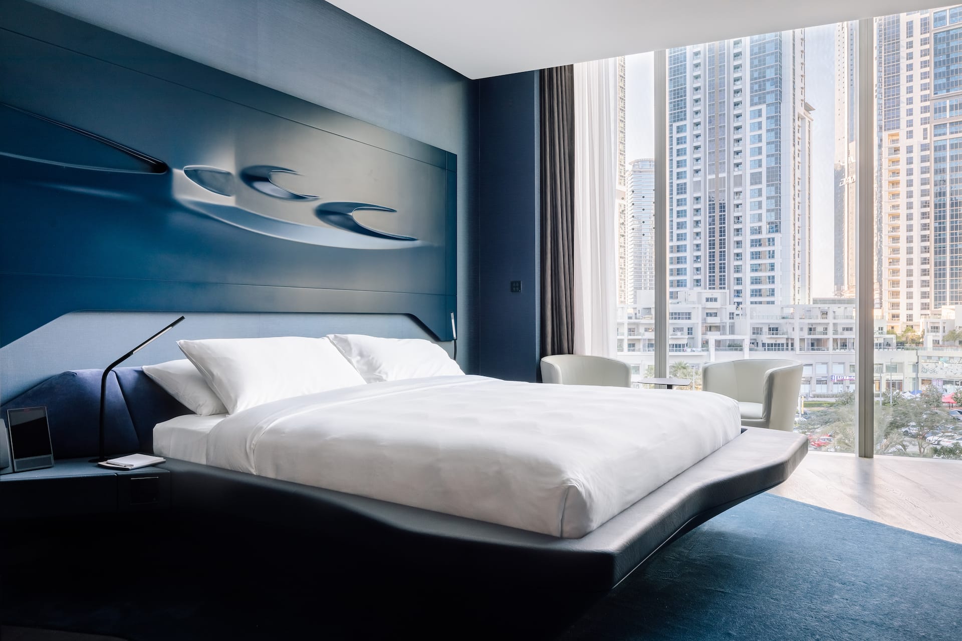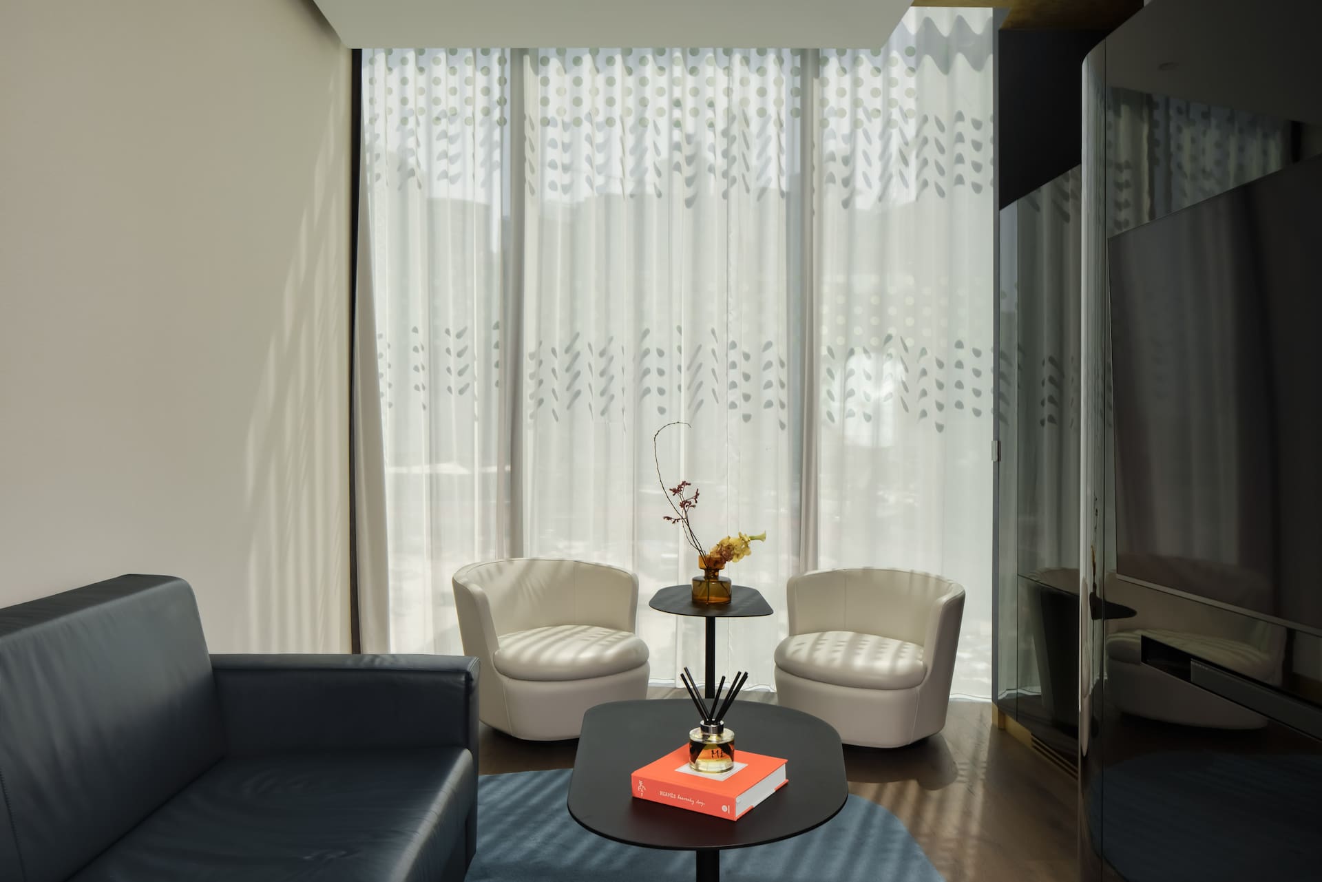 Двухкомнатный номер включает спальню, гостиную, ванную комнату с джакузи. Гости располагаются на двуспальной кровати king-size. К услугам гостей кондиционер, телевизор, Wi-Fi, косметические принадлежности, звуковая панель. Из окон открывается вид на город.