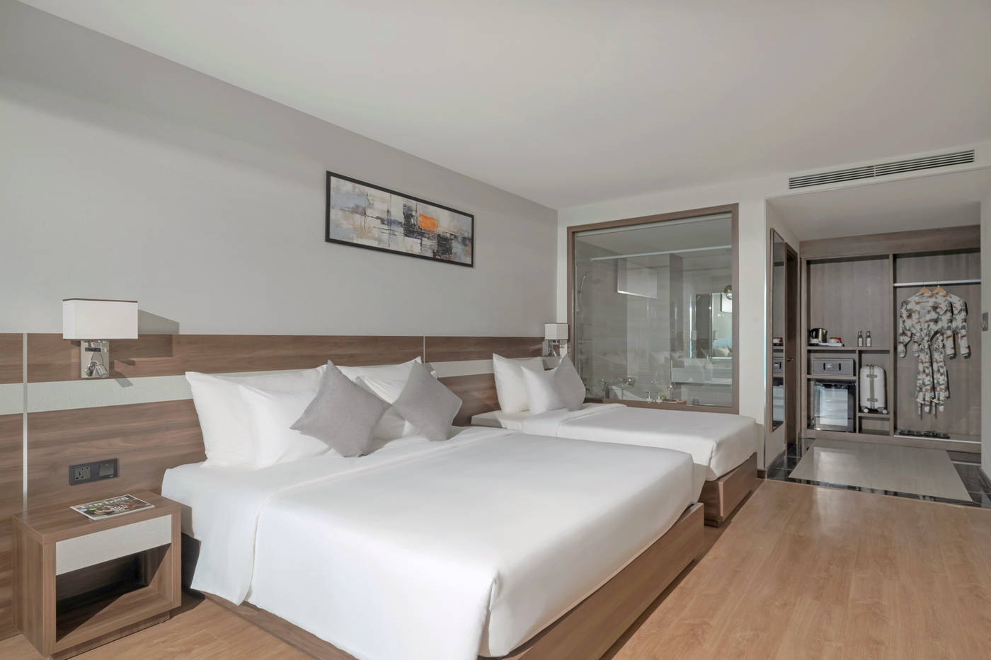 Комфортабельный номер предлагает спальню с двуспальной/2 раздельными кроватями, ванную комнату с душем/ванной, часть номеров с балконом. В числе стандартных удобств — телевизор, кондиционер, мини-бар, сейф, телефон, Wi-Fi, набор для приготовления чая и кофе, фен, тапочки, халаты, банные принадлежности.