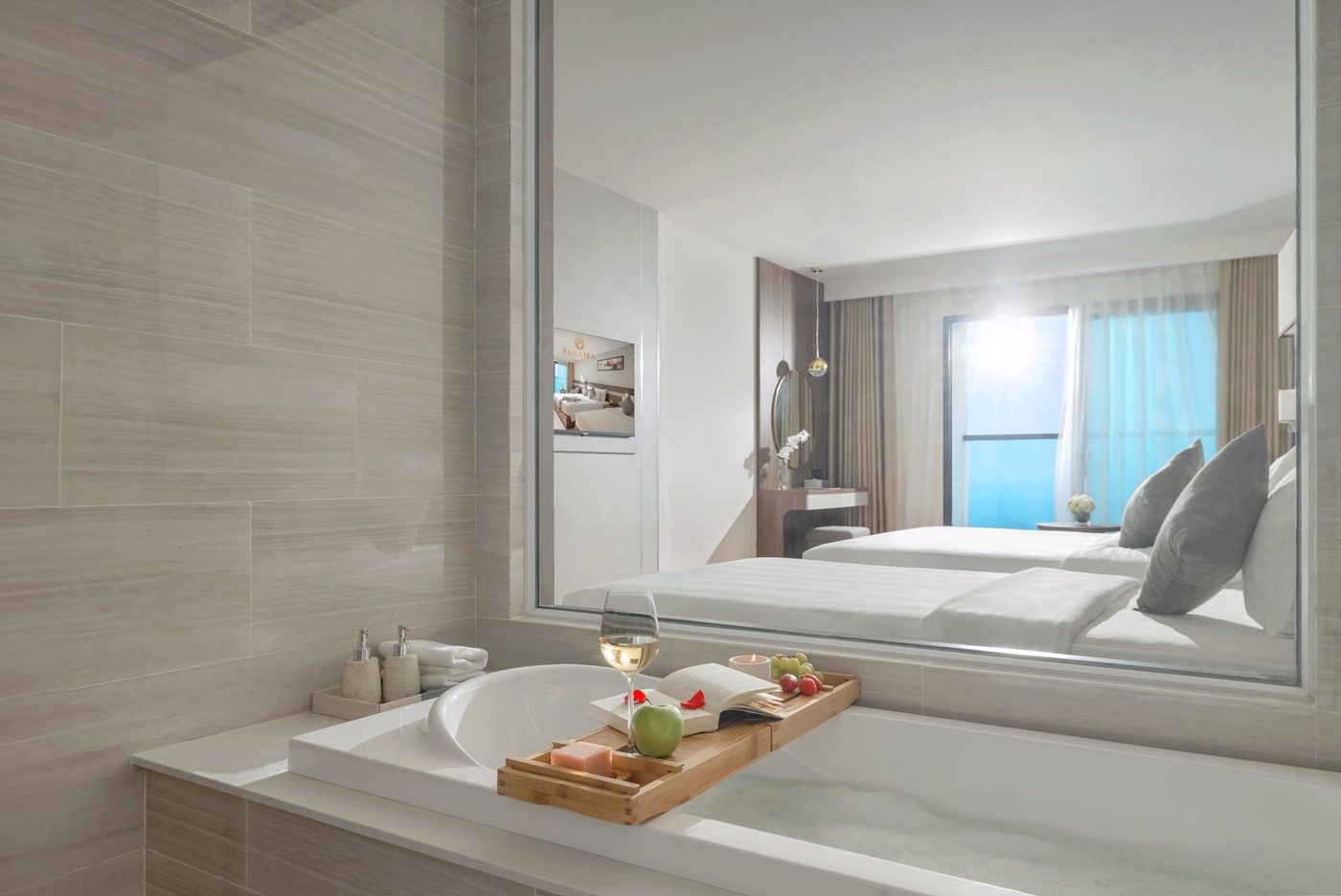 В распоряжении гостей номера с видом на море две раздельные кровати, кондиционер, мини-бар, телевизор, сейф, телефон, набор для приготовления горячих напитков. Санузел с душем/ванной, туалетными принадлежностями, феном, халатами и тапочками.