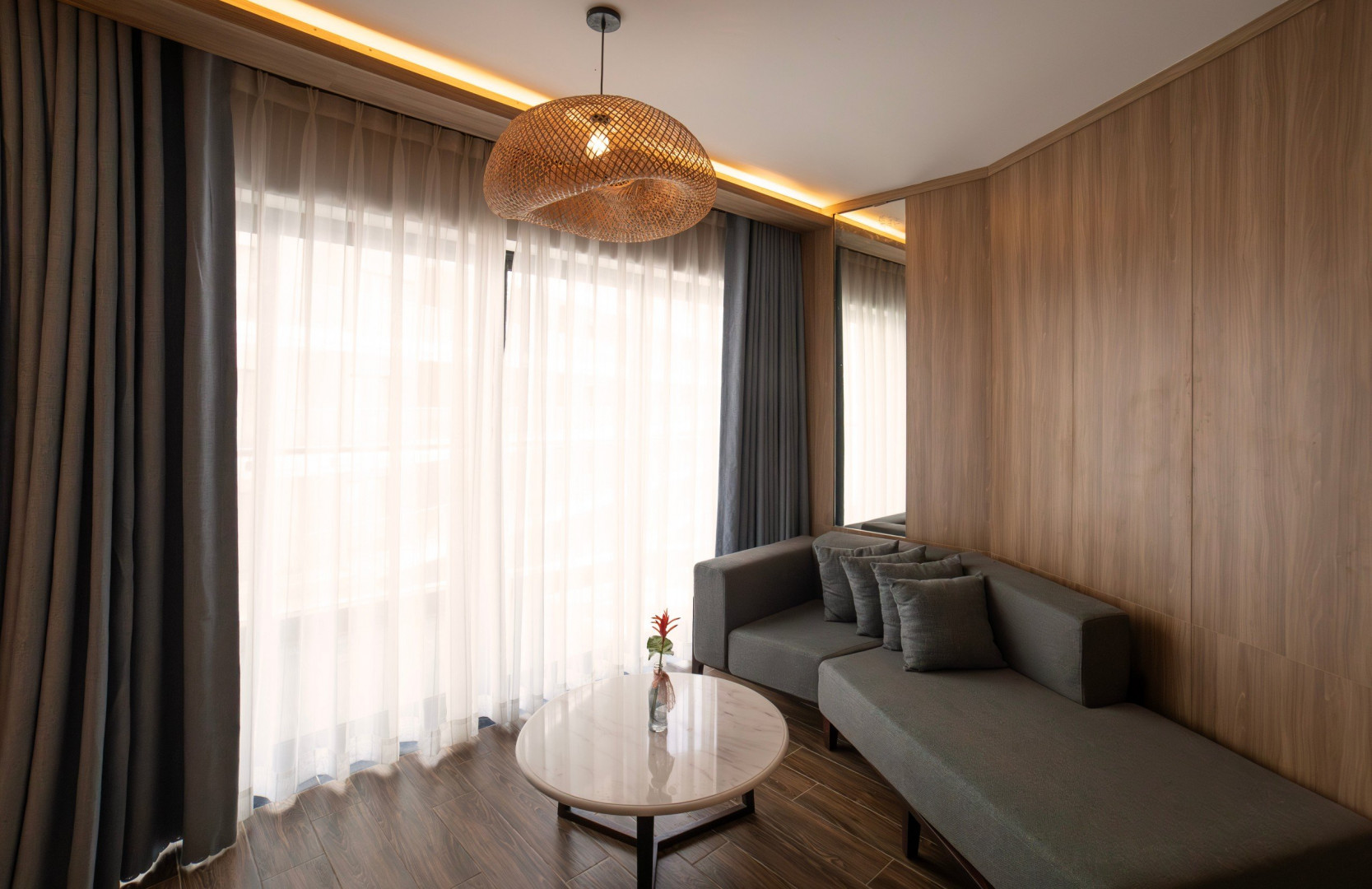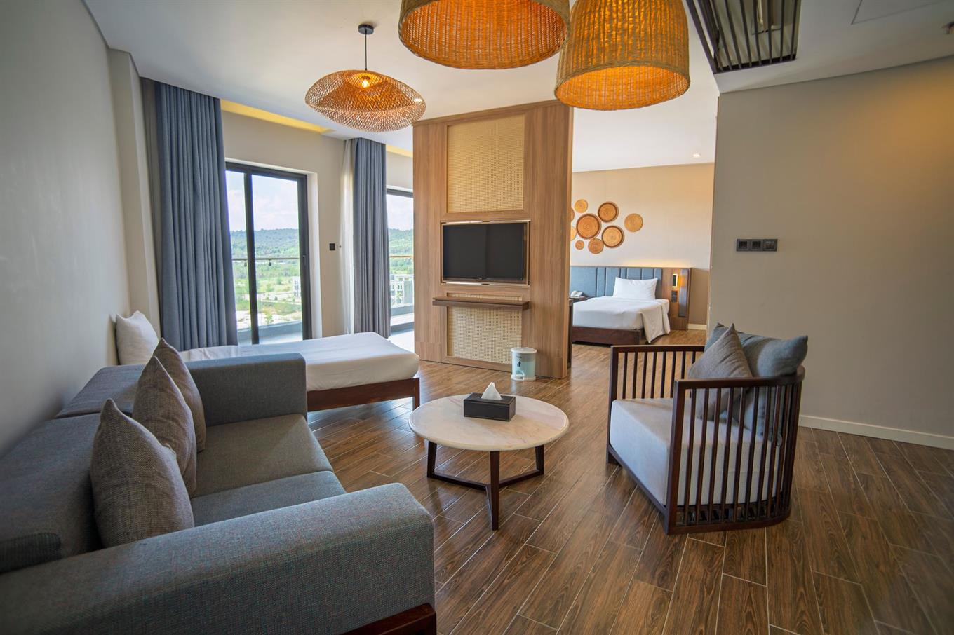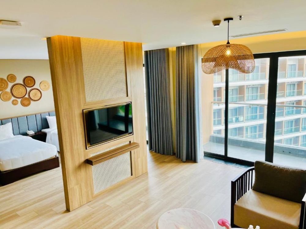 Комфортабельный номер включает спальню с двуспальной king-size кроватью/двумя односпальными кроватями, гостиную с диваном, балкон, санузел с душевой кабиной и ванной. В числе удобств - Wi-Fi, фен, чайно-кофейный набор, кондиционер, телефон, мини-бар, телевизор, туалетные принадлежности, вид на город.