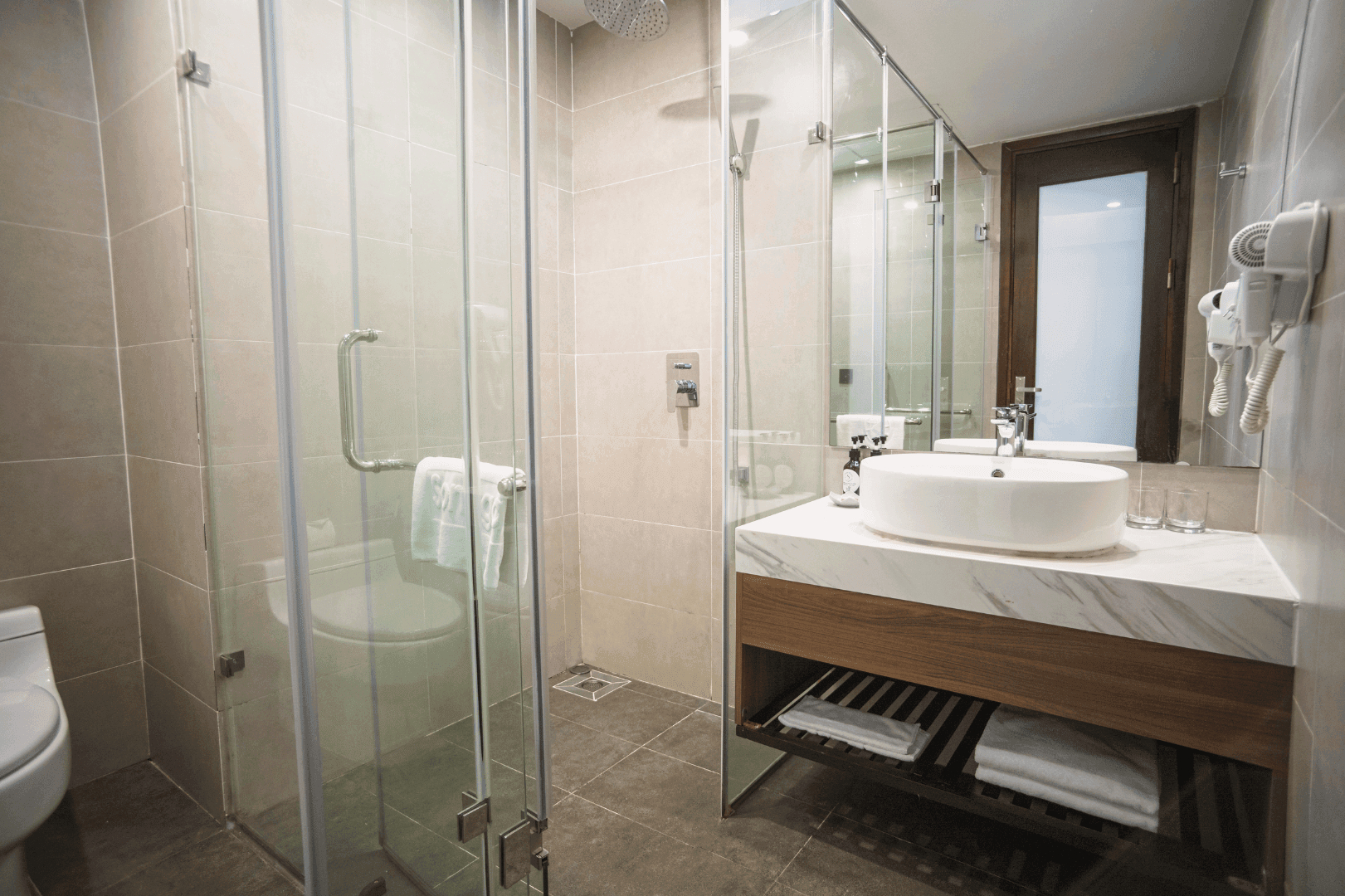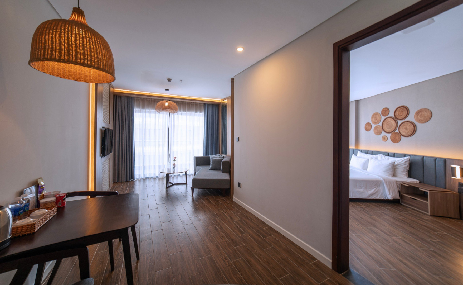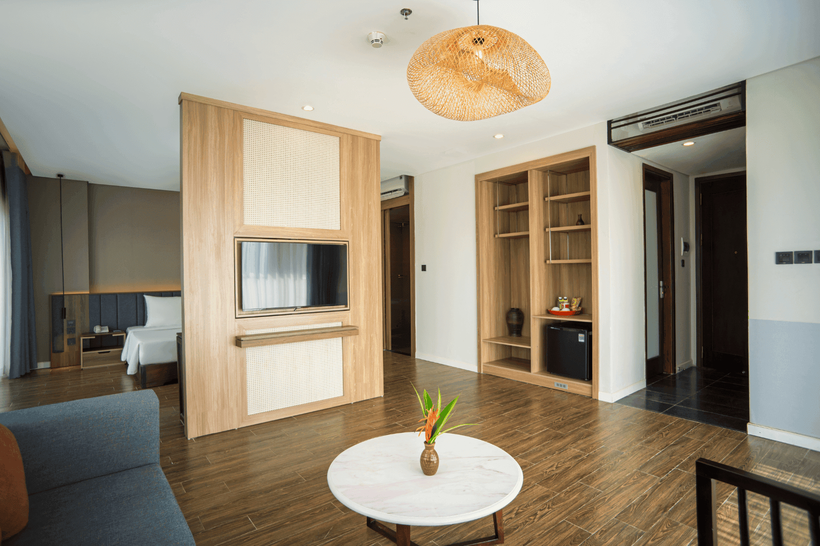 Комфортабельный номер включает спальню с двуспальной king-size кроватью/двумя односпальными кроватями, гостиную с диваном, балкон, санузел с душевой кабиной и ванной. В числе удобств - Wi-Fi, фен, чайно-кофейный набор, кондиционер, телефон, мини-бар, телевизор, туалетные принадлежности, вид на город.