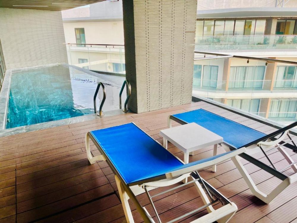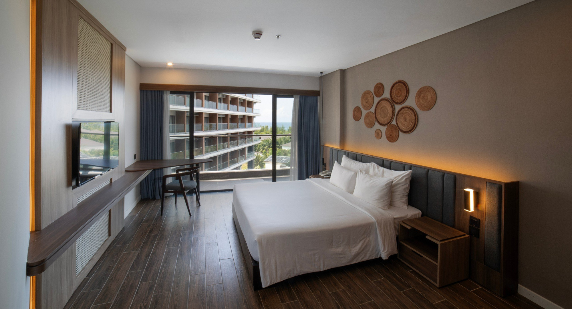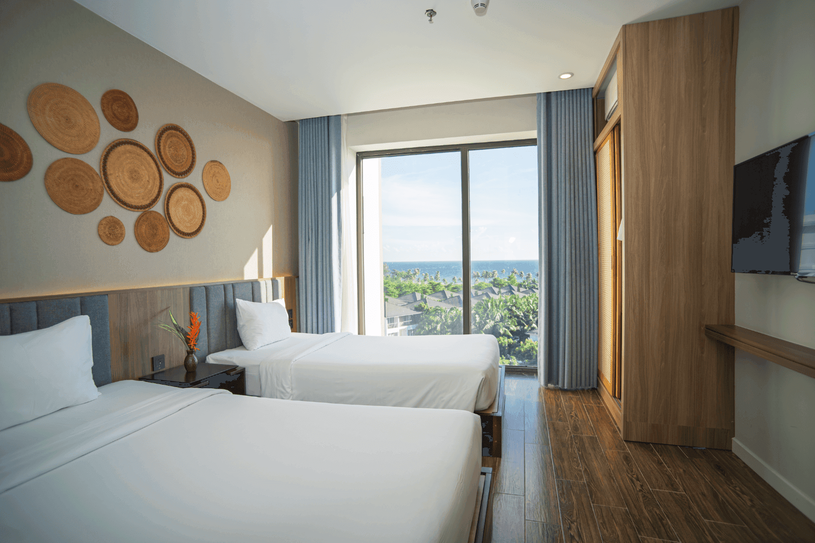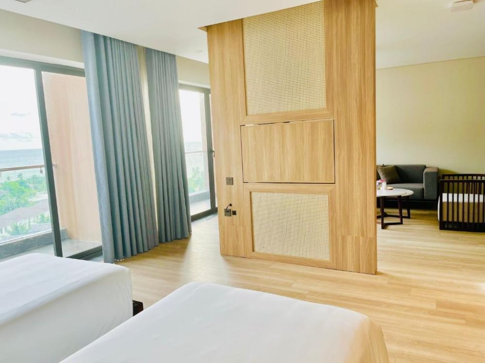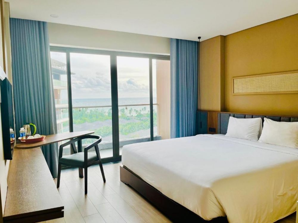 В комплектации номера спальня с двуспальной king-size кроватью/2 раздельными кроватями, балкон, санузел с душевой кабиной. Среди удобств чайные принадлежности, телефон, телевизор, мини-бар, кондиционер, беспроводной Интернет, фен, набор гостиничной косметики. Из номера открывается вид на море.