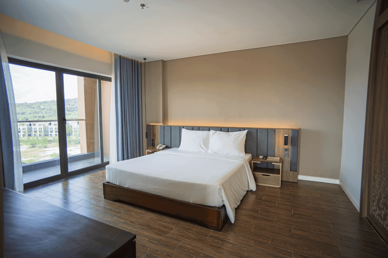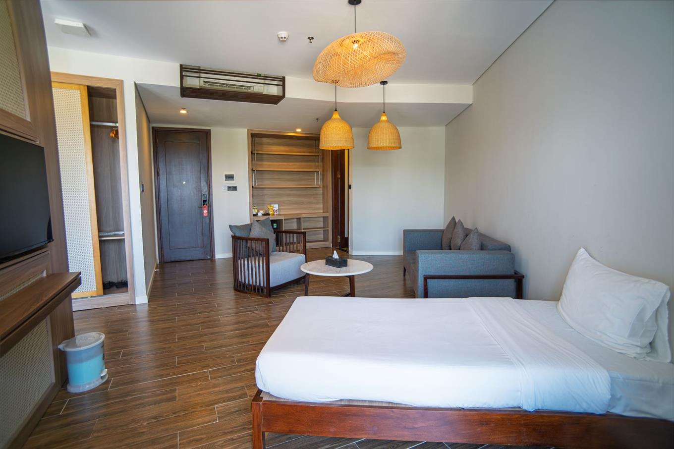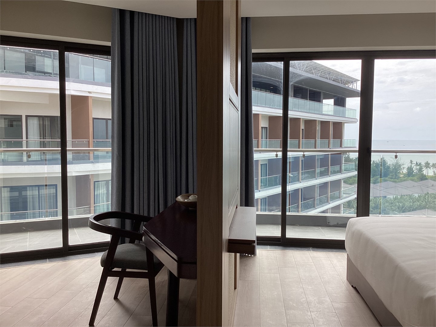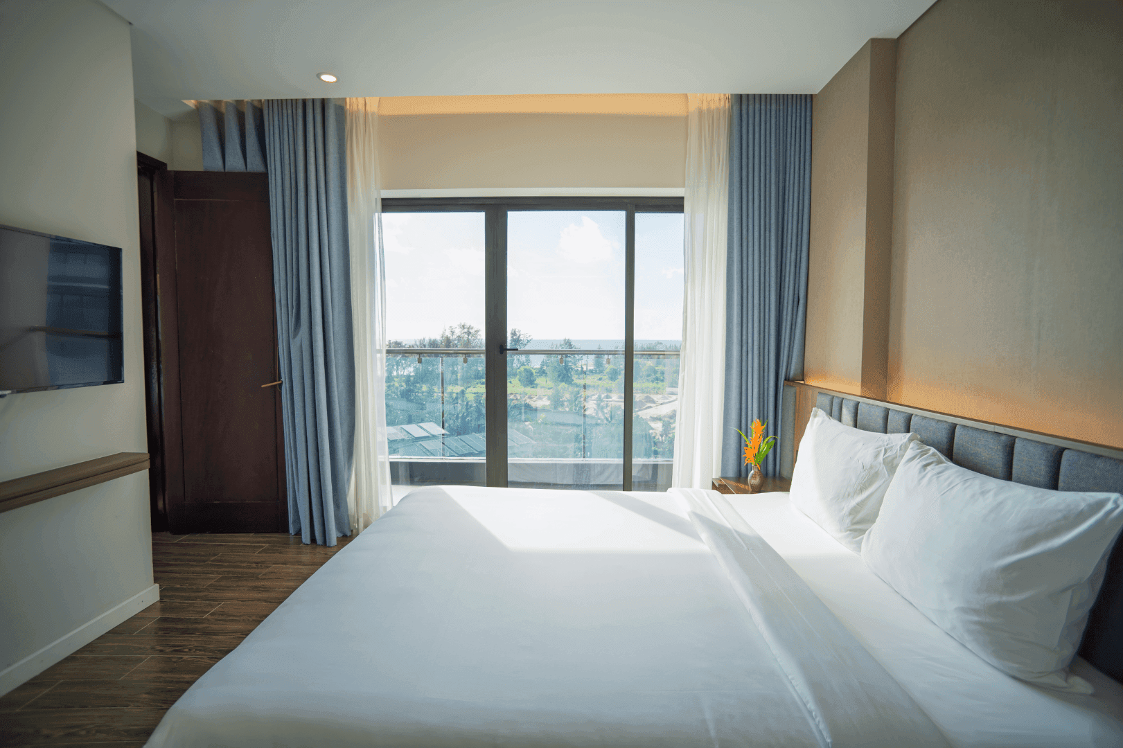 В комплектации номера спальня с двуспальной king-size кроватью/2 раздельными кроватями, балкон, санузел с душевой кабиной. Среди удобств чайные принадлежности, телефон, телевизор, мини-бар, кондиционер, беспроводной Интернет, фен, набор гостиничной косметики. Из номера открывается вид на море.